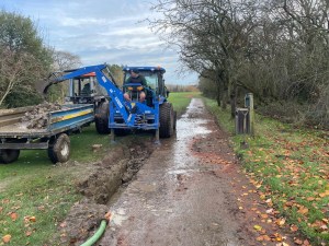 As the ground frost lingers we’ve been working on the ditches around the course, clearing the ditch behind the 7th green and to the right hand side of the 10th tee by hand. We’ve had the digger to the ditch that runs through the woods to the left hand side of the 8th and the ditch behind the 9th green. Behind the 9th needed further work carried out with the trimming back of trees and shrubs to gain access. All ditches are now cleared and running well.