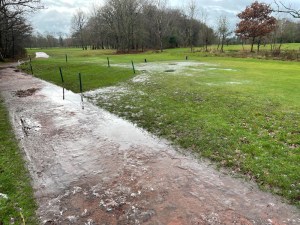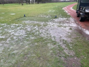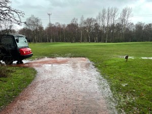 Monday seen the weather turn back to the way it’s been over the last few weeks, extremely wet. Monday seen a further 40 mm of rain fall onto already saturated and in some cases frozen ground, below are a collection of photos showing the current course conditions.