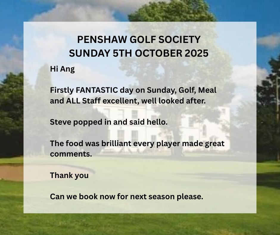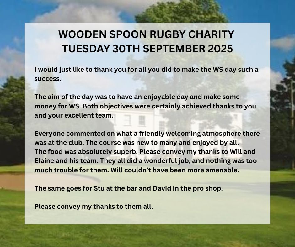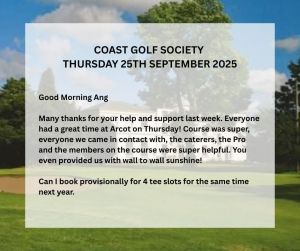 Taking a broader view I should also mention the friendliness extended to our group from your members both in the clubhouse and out on the course.